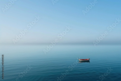 © Fotograf, Naklejka premium A small boat is floating in the middle of a large body of water