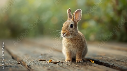 © Oleg, Fototapeta premium A small brown rabbit sitting on top of a wooden table