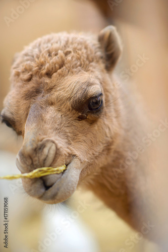© Tortuga, Fototapeta premium a small camel chews hay, soft focus