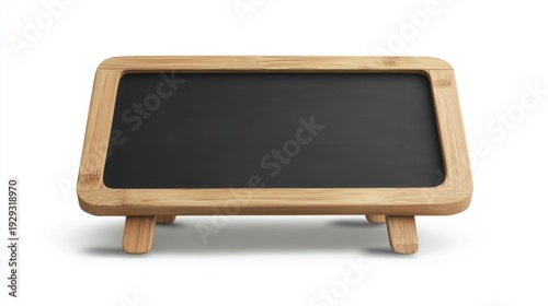 Obraz premium A small chalkboard with a dark surface is supported by a light wooden frame...