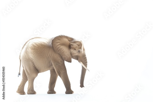 © Vii, Obraz premium A small elephant stands on a white surface