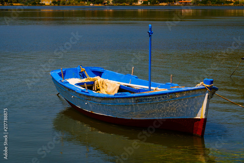 © Valentinos Loucaides, Naklejka premium A small fishing boat, floating on the sea... somewhere in Greece