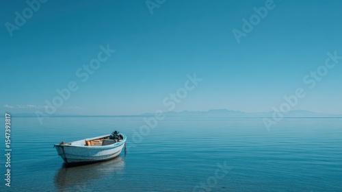 © Istri, Naklejka premium A Small Fishing Boat On Calm Water