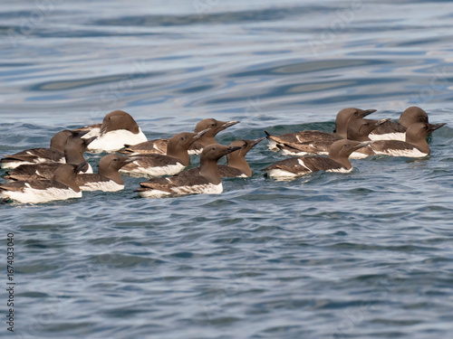 © Christopher, Naklejka premium a small flock of Common Murres sitting on the ocean