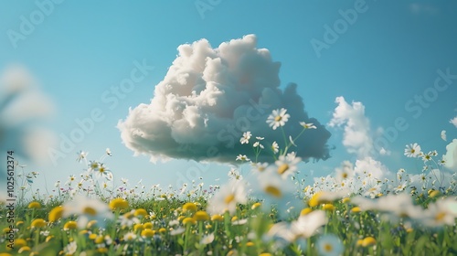 Fototapeta premium A small, fluffy cloud above a field of daisies.