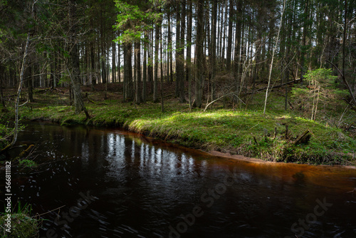 © EriksZ, Obraz premium A small forest stream with sandstone outcrops