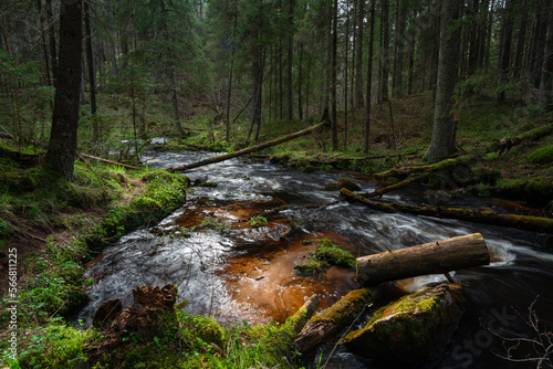 © EriksZ, Obraz premium A small forest stream with sandstone outcrops