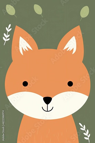 Naklejka premium a small fox with leaves in the background in a cartoon style
