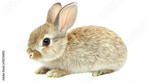 Fototapeta premium A small, furry rabbit with soft brown fur and large ears, sitting calmly.