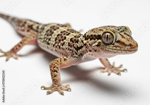 Naklejka premium A small gecko, positioned in the foreground, is the central subject. Its body...