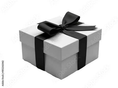 Fototapeta premium A small gift box wrapped with a black ribbon and containing an unknown present