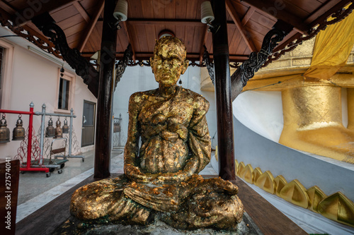 Fototapeta premium a small golden Buddha at wat Intharawihan. This 32 metre high and 10 feet wide Buddha is the biggest of its kind in the world. Wat Intharawihan is on wisut Kasat road Bangkok Thailand