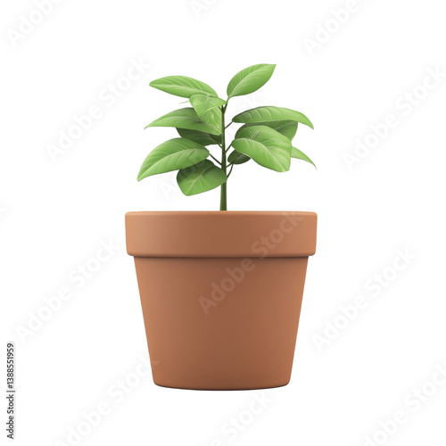 Fototapeta premium A small green plant in a terracotta pot, symbolizing growth and nature.