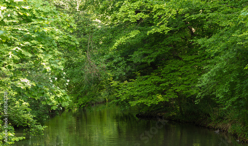 Fototapeta premium A small green river which flows into the lake Leman. Lausanne Switzerland