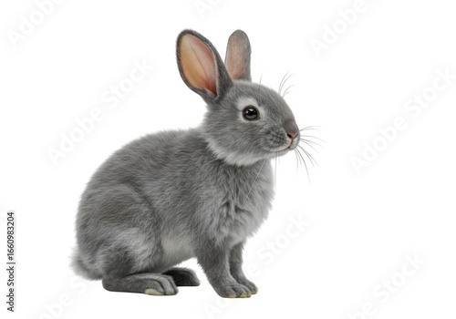 Obraz premium A small grey rabbit sitting isolated on transparent background