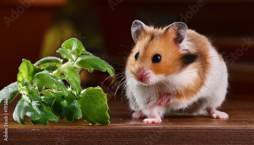 © Nicolas, Fototapeta premium A Small Hamster Near The Plant