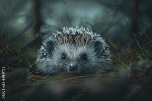 © Fotograf, Fototapeta premium A small hedge sitting atop a lush green forest, suitable for nature or garden-themed projects