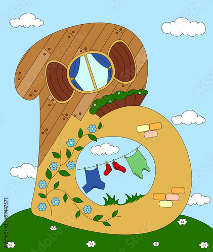 © fir4ik, Naklejka premium A small house in the shape of letter "B". Illustration for kids