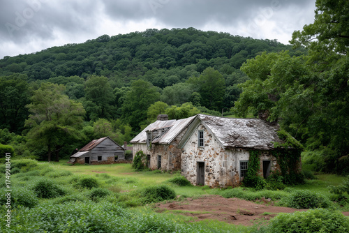 © lashkhidzetim, Obraz premium A small house sits in a field with a large mountain in the background
