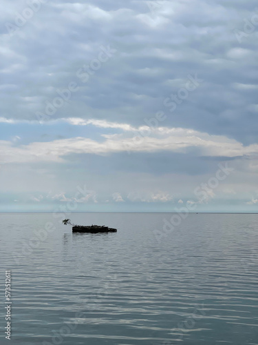 Naklejka premium A small island on Lake Baikal with a lonely lopsided tree