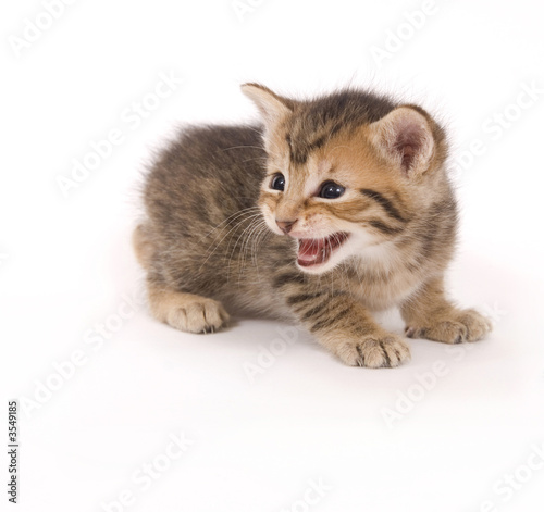 © Tony Campbell, Obraz premium A small kitten cries while on a white background