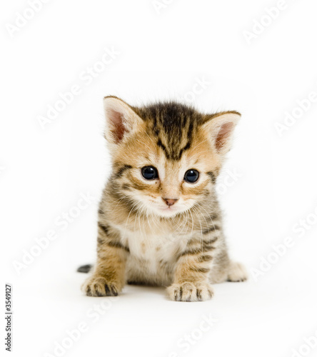 Obraz premium A small kitten sitting on a white background