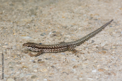 Naklejka premium A Small Lizard Enjoying the Start of the Hot Season by Taking a Walk on the Pavement