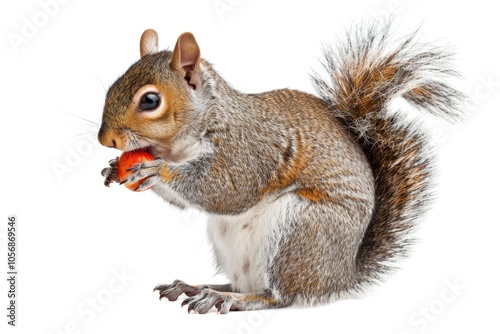 © Vii, Fototapeta premium A small mammal enjoying a snack on a simple white surface