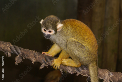 © Lukasz Janyst, Fototapeta premium A small monkey sitting on a rope at the zoo