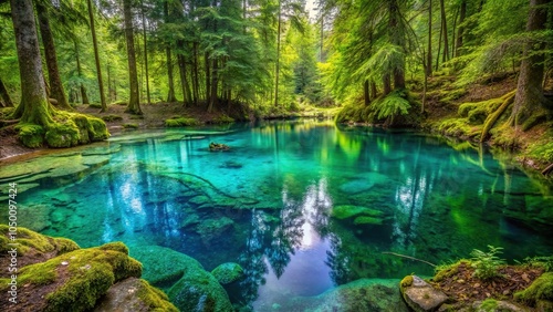 © vilavanh, Obraz premium A small pool of turquoise water forms on the forest floor, nature, leafy
