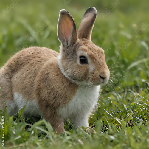 © Masum, Fototapeta premium a small rabbit that is sitting in the grass