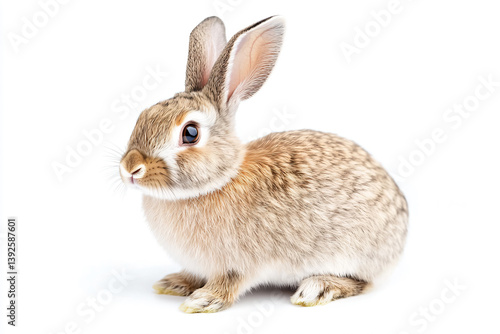 © Nam, Fototapeta premium a small rabbit with a long tail sitting on a white surface
