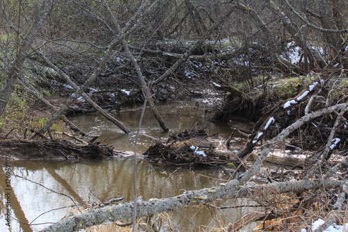 © алексей семиколенных, Obraz premium a small river in the forest overflowing in mid-spring