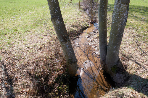 © creativcontent, Obraz premium a small river with grass and crocuses