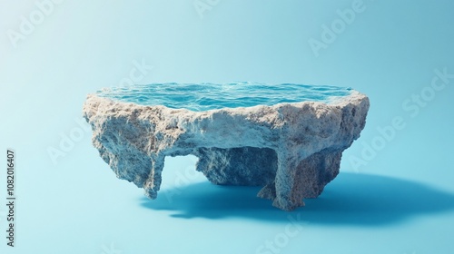 Naklejka premium A small, rocky island with a pool of blue water on top, isolated against a light blue background.