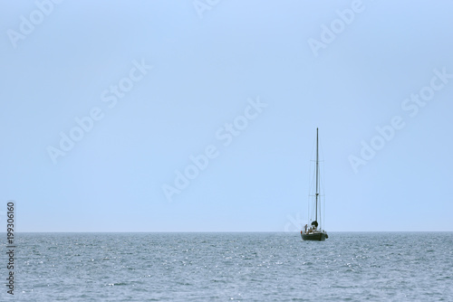 Fototapeta premium A small sailing ship with sails down, one at sea