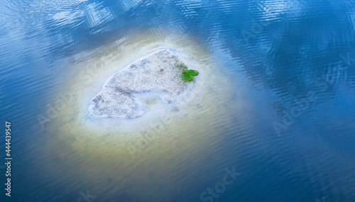 © CreativeSuburb, Fototapeta premium A small sandy island surrounded by blue water.