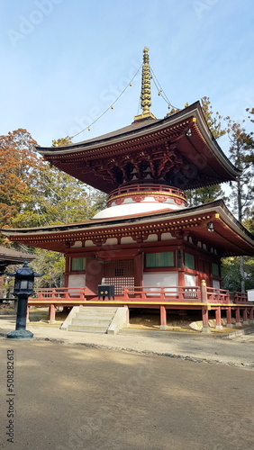 © GCphotographer, Fototapeta premium A small, secluded temple town has developed around the sect's headquarters that Kobo Daishi built on Koyasan's wooded mountaintop. Since then over one hundred temples have sprung up along the streets