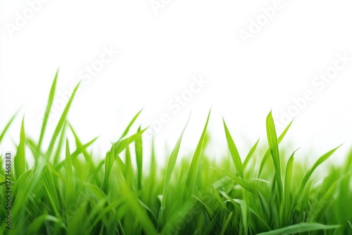 © Alena, Fototapeta premium A small section of lush green grass on a white background, ideal for use in designs or illustrations