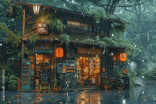 Obraz premium A small shop with a sign that says "Kanji" on it