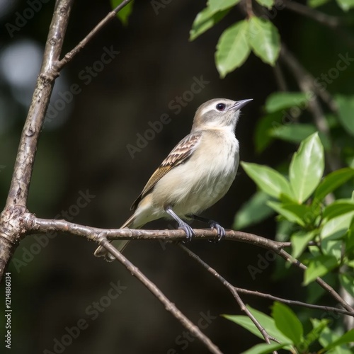 Fototapeta premium A small sparrow perched on a slender branch