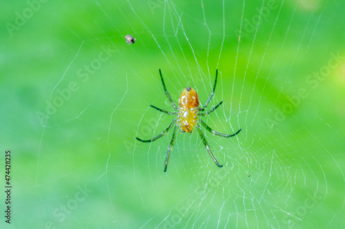 Fototapeta premium A small spider hanging on its web