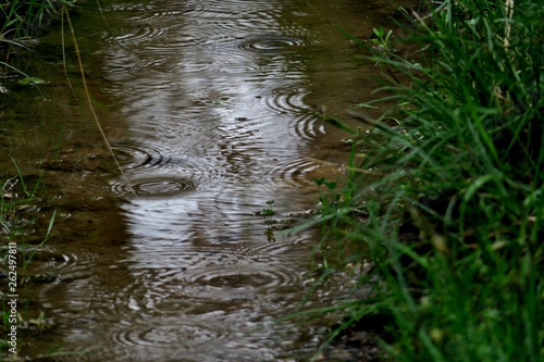 © Tania, Fototapeta premium a small stream on which raindrops fall close up