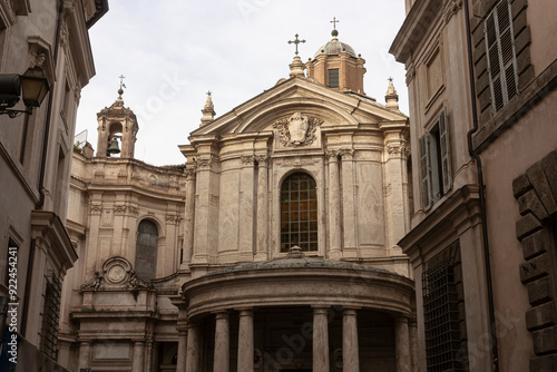 Fototapeta premium A small street and a small church in Rome