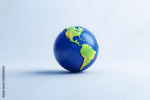 © Asfak, Fototapeta premium A small, stylized 3d globe of earth with continents in green and oceans in blue
