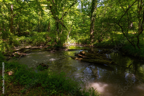 Naklejka premium A small summer river in the forest.
