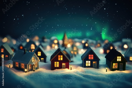 © Carlos, Fototapeta premium A small town with houses lit up at night