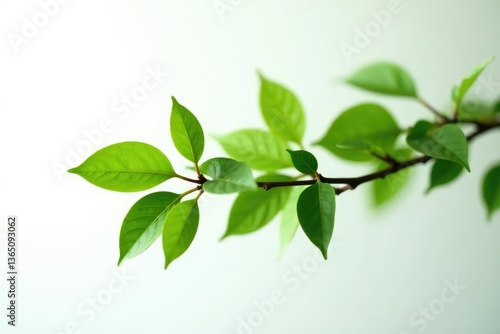 Fototapeta premium A small tree branch with green leaves isolated on white background, green, white space