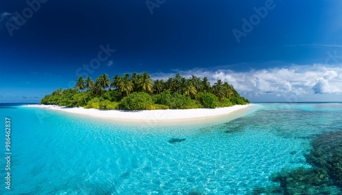 Fototapeta premium A small, tropical island with white sand beaches and clear blue water