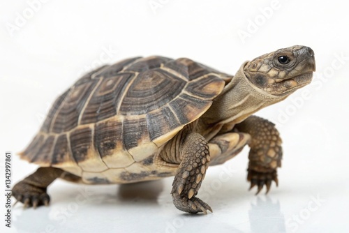 © dasha122007, Obraz premium A small turtle is standing on a white background